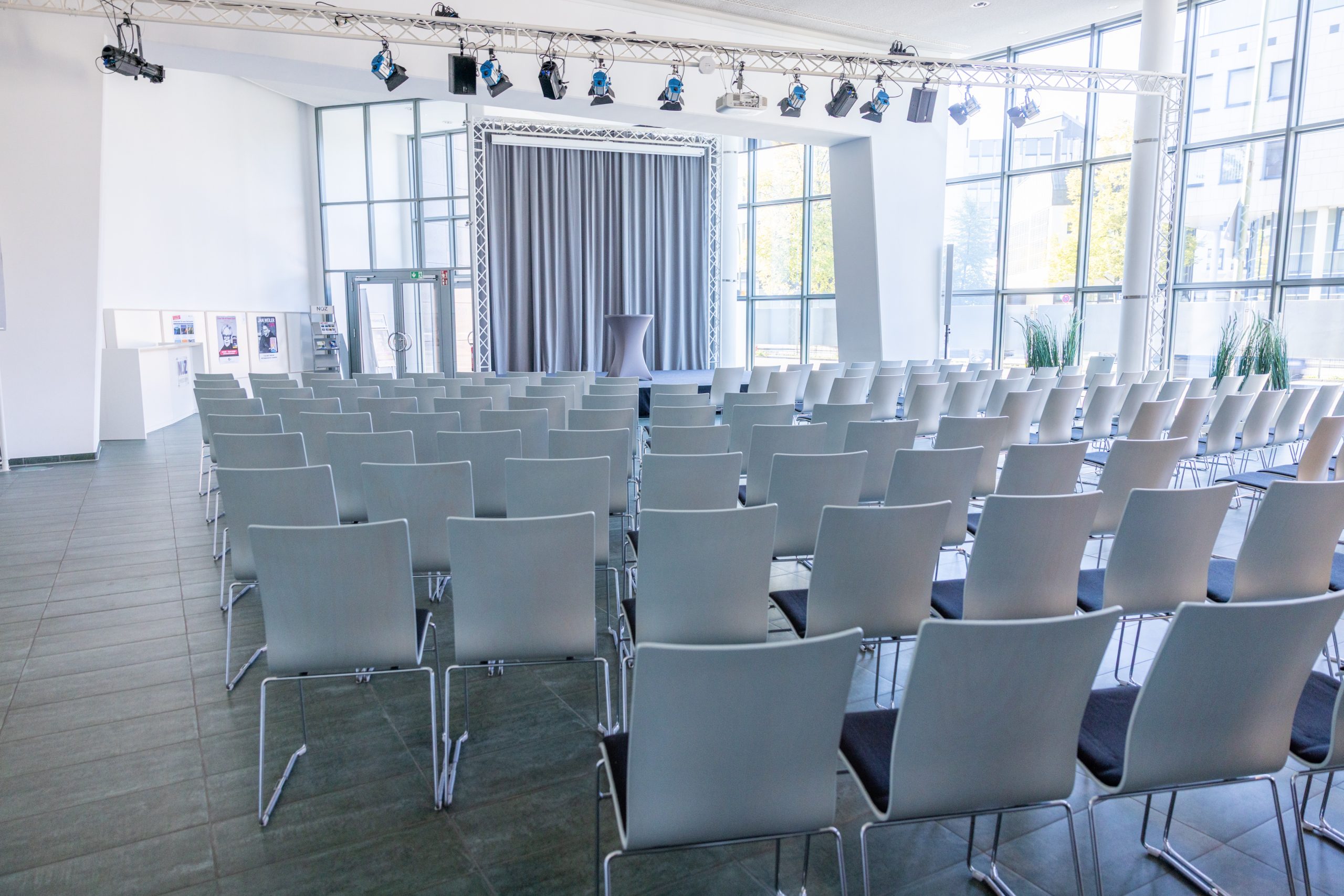 Bei einer Kapazität von 25 bis 199 Personen ist die Gestaltung des Raumes individuell möglich.